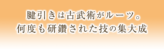 筋整流法(古式腱引き療法)は、古くから伝わる古武術の流れをくんでいます。