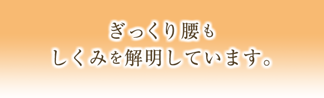 ○ぎっくり腰の仕組みがわかった方法でぎっくり腰の改善に効果をあげています。